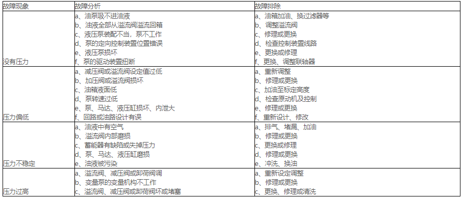 6、压力不正常故障分析和排除(表 1)