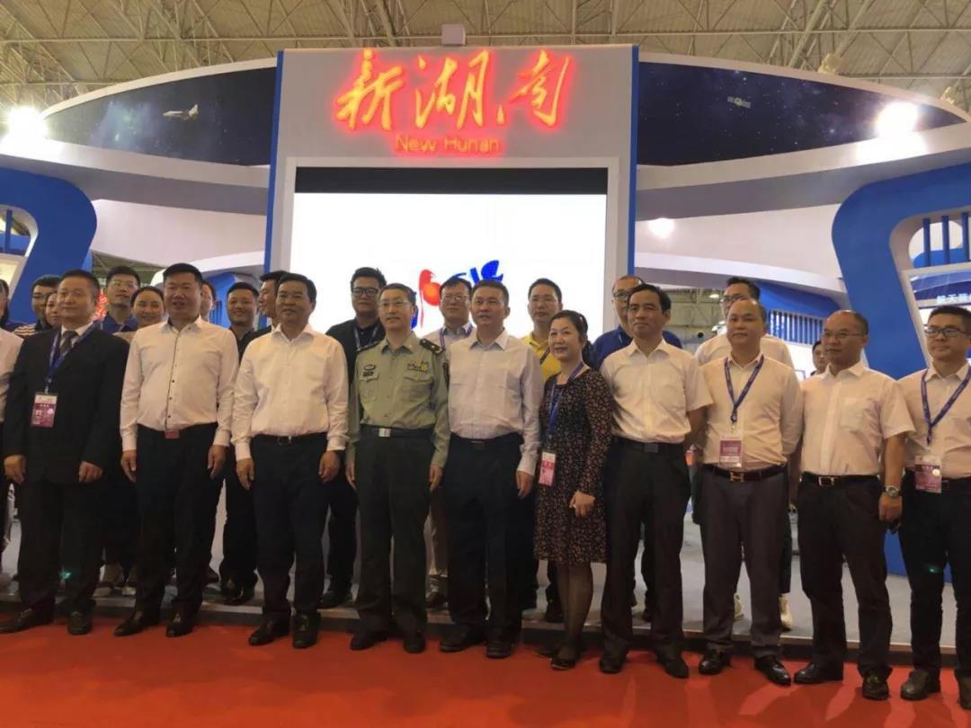 副省长何报翔、国防科技大学副校长刘泽金与湖南省参展企业代表合影(右二:乐竞(中国)一站式服务平台副总裁唐凯)