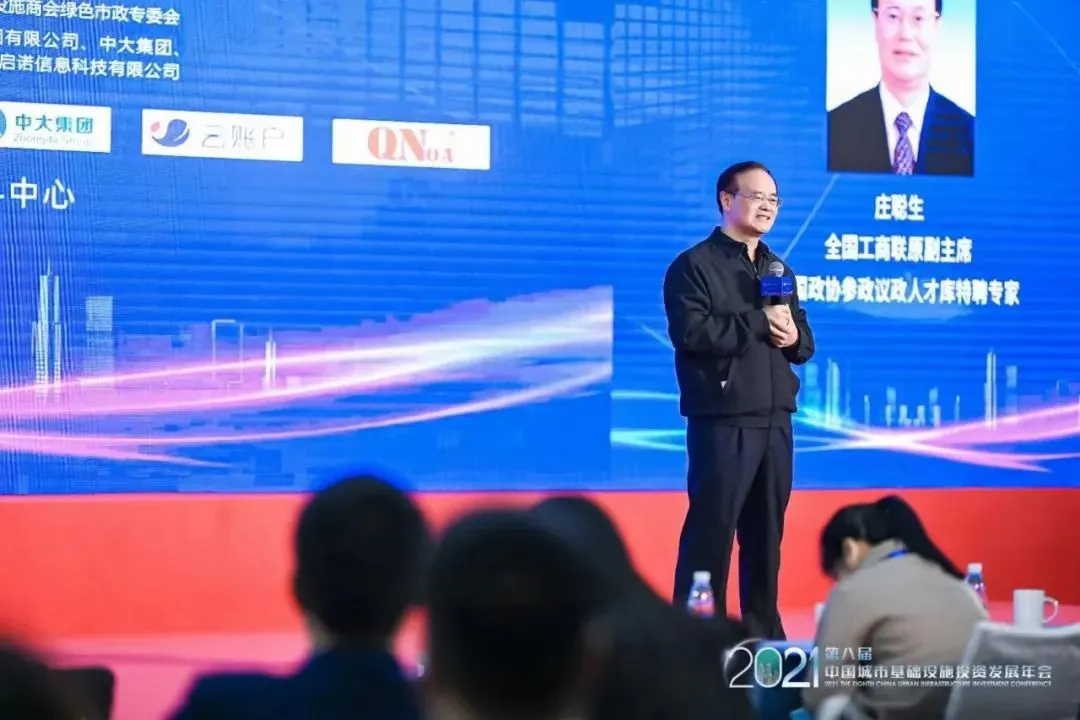 全国政协参政议政人才库特聘专家、全国工商联原副主席庄聪生,国务院国有重点大型企业监事会原主席季晓南等有关领导嘉宾莅临大会并做主旨演讲;全联城市基础设施商会会长,万科董事会主席郁亮为大会致辞;商会副会长、中国丝路集团董事长闫立金,商会绿色市政委员会副秘书长、浙江德铭星企业管理咨询有限公司总经理陈玲苏,中大集团党委书记、董事长彭国禄,江苏乐筑网络科技公司董事长张风格,云账户业务研发部负责人、高级总监杨宜等嘉宾进行演讲分享。会议由商会副会长、大成律师事务所高级合伙人李寿双主持。