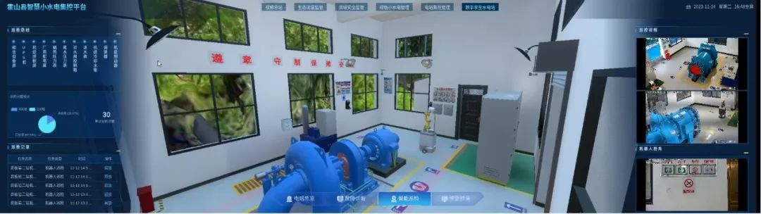 构建三维可视化平台,打造数字孪生水电站一张图。对高板岩水库、二级电站及其周边环境共2平方公里范围进行倾斜摄影三维建模,可视化真实再现水库电站的三维场景,并与监控系统、机器人巡检、视频系统等实现联动,实现水库电站实时监测预警、故障诊断等功能。