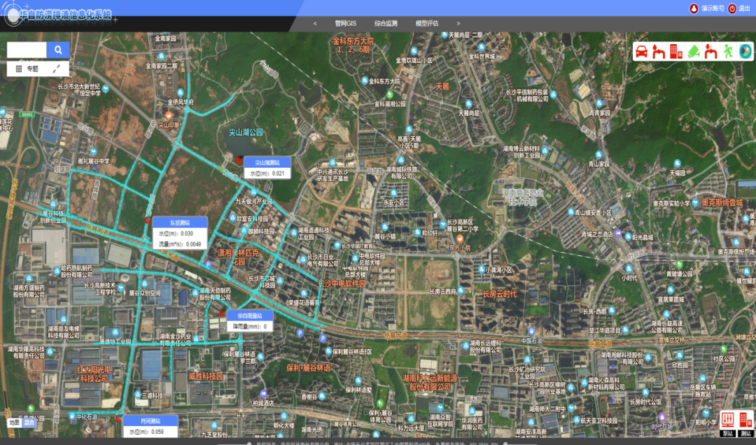 系统通过搭建城市防涝排渍网格化管理信息平台,实时对降雨量、排水管网水位等进行在线监测,预测和评估灾情风险。通过管网监测、井盖监测、抢险物资管控、抢险指挥调度等,提升城市防涝排渍设施运维、管理决策和应急处理能力,有效降低内涝风险和损失。