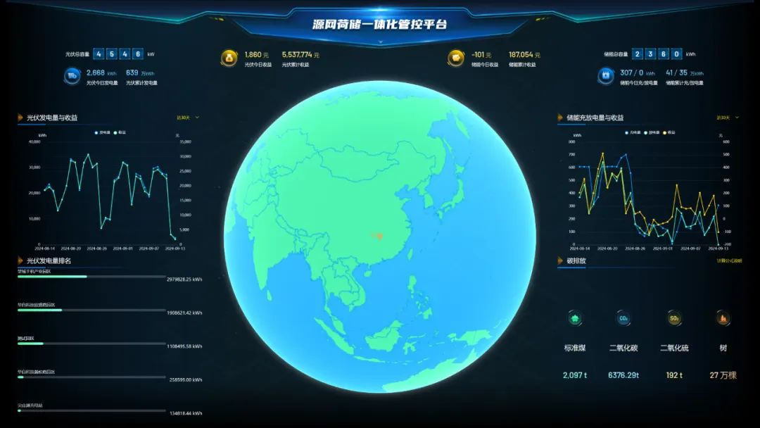 在全球能源转型的背景下,随着新型电力系统的构建,对新能源消纳和存储、电网系统支撑力等提出更高要求。“源网荷储一体化”通过将电源、电网、用电负荷和储能系统进行有机整合,实现电力系统的高效协同与动态平衡,提高清洁能源利用率、优化能源配置、平抑供需波动,是推动能源转型和实现“双碳”目标的重要力量。一体化模式可实现政府、园区、投资商、用户和能源服务商多方共赢,构建能源服务新生态圈。精准发力储能赛道,乐竞(中国)一站式服务平台在源、网、荷多场景储能建设积累了丰富经验和技术。基于“云大物移智链边”技术,公司创新性的打造“源网荷储一体化管控平台”,通过实现智能调度、智能运检、虚拟电厂、能源服务、电碳管理、电热管理等功能,对“源网荷储”各类资源进行一体化协调控制,实现灵活互动,有力推动新型电力系统建设。目前该平台已在多个项目中应用,有效提升电网安全运行水平,促进新能源消纳,带来了较高的经济效益。