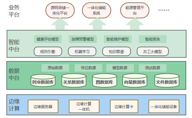 01海量数据公司拥有多年积累的百兆瓦级大型储能电站PB级历史运行数据,结合实验室大量测试电池数千次的循环实验数据及数千万个电池的完整充放电测试数据,为故障预警及健康评估模型提供坚实的数据基础。02AI赋能综合利用大数据、深度学习、知识图谱和大模型等人工智能技术,充分挖掘数据规律和行业专家经验,敏锐察觉海量数据中的细微异常,准确评估电站及设备健康状态,高效计算电池维护的所有参数,自动生成各类报告,为储能电站运维全面智能化赋能。03云边协同针对大型储能电站百万点级数据量的传输、处理难题,采用云边协同架构,边缘计算终端进行实时分析、统计基本特征,云端定时分析评估、处理复杂计算,确保系统有序、高效运行。04全程可视从电站整体到单个电池,从健康状态、指标得分到每一个原始数据,从故障预警信息到所有相关监测数据,均可通过可灵活定制的数据可视化功能快速查看,让用户随心掌握所有关键信息。