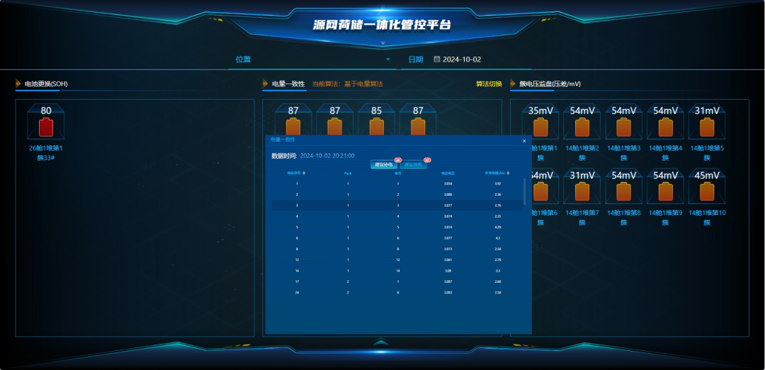 利用系统工程理论和层次分析法,综合考虑循环次数、容量衰减、效率衰减、电压、温度、湿度、一致性、内阻、绝缘等因素,建立电芯、电池簇、电池堆、电站四级设备的指标体系和健康评估模型,综合评估设备健康状态,为运维人员提供科学的维护建议。