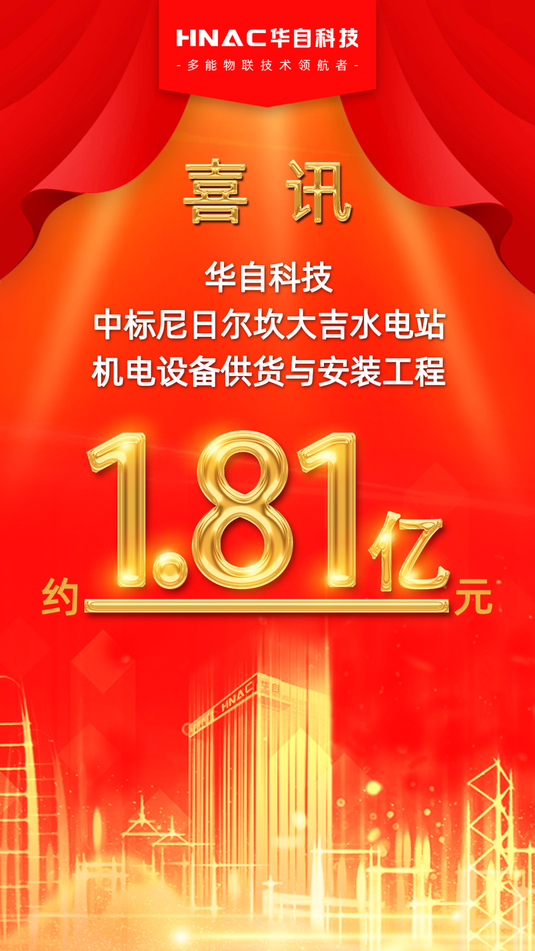 近日,公司收到中国葛洲坝集团国际工程有限公司发出的《中标通知书》,确认乐竞(中国)一站式服务平台为尼日尔坎大吉水电站机电设备供货与安装工程的中标单位,中标金额为28,134,276.15 美元(折合人民币约18,120.72 万元)。