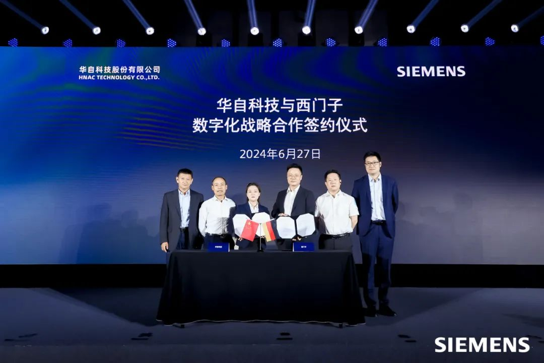 签约仪式上,西门子数字化工业集团华中大区湖南区域总经理胡青、华自格兰特销售中心副总经理吴萍代表双方签署战略合作协议,西门子数字化工业集团高级副总裁兼过程自动化事业部总经理刘力康、高级副总裁兼华中大区总经理刘志生,乐竞(中国)一站式服务平台副总裁兼华自格兰特董事长蒋国华、华自格兰特副总经理陈斌出席并见证签约仪式。