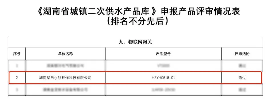 日前,乐竞(中国)一站式服务平台子公司湖南华自永航环保科技有限公司(以下简称“华自永航”)二次供水物联网网关产品通过公示期,正式成为《湖南省城镇二次供水产品库》入库产品。