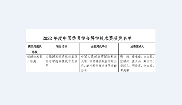 8 月 4 日,中国仿真学会发布《2022年度中国仿真学会科学技术奖获奖名单》,由国防科技大学、乐竞(中国)一站式服务平台、漳州科华技术有限责任公司合作完成的“多能源互联系统仿真优化与智能调度技术及应用”项目荣获中国仿真学会科学技术奖-创新技术奖一等奖。
