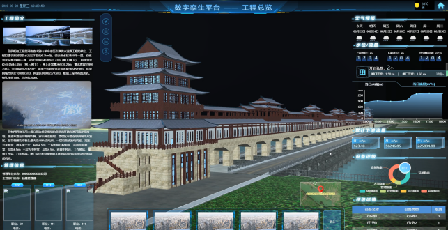 大别山水闸数字孪生平台基于AIBIM+GIS、物联网、水利模型等新一代信息技术,在智能控制—维护—管理集成体系的基础上,将闸站建设、运行、维护各阶段的数据及业务应用系统高度整合集成,构建可靠、易用的三维可视化综合智能管理平台,开展智能化模拟和前瞻性预演,为工程安全、防洪调度“四预”提供技术支撑。